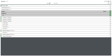 Obsahuje seznam aktivních alarmů a alarmový log. U podstanic s OS Linux generický přehled alarmů v nenormálním stavu a historie alarmů, která pomáhá přesnější diagnostice poruch. Sumární alarmy - přehled alarmů, pro něž má uživatel práva U podstanic s OS Linux, rychlá a přehledná kontrola stavu technologií.
