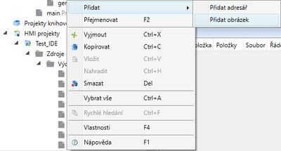 Ve Vašem HMI projektu klikněte pravým na „Zdroje“ a zvolte „Přidat obrázek“. Pro lepší řazení vyberte „Přidat adresář“ a následně do tohoto adresáře můžete přidávat obrázky pravým klikem myší na adresář a „Přidat obrázek“.