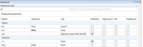 V případě převedení čísla na minuty by mohla hodnota vstupu In1 typu time být např. t#1m, na hodiny t#1h atd.