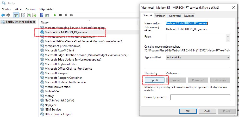 „MERBON_RT_service“ je název služby tak, jak bude vidět v seznamu služeb OS Windows. Tento název je volně definovatelný.