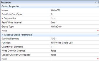 Signál můžeme zapisovat bitovou funkcí F15 Write Multiple Coils. Nastavení skupiny pro zápis pak bude následující: