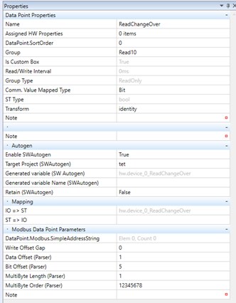 Modbusový registr, který tedy neobsahuje analogovou hodnotu (teplotu, tlak), ale soubor bitů, obvykle přenášíme do PLC jako datový typ word. To by mělo signalizovat, že se nejedná o nějaké celé číslo s vlastním významem, ale kombinaci bitů – i když samozřejmě v modbusovém klientu vidíme hodnotu jako číslo v podobě integeru nebo integeru bez znaménka.