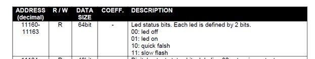 V aplikačním programu bychom pak rozebraný registr opět poskládali po dvou bitech pro každou LED do proměnné, indikující stav příslušné LED jako celé číslo v intervalu 0...3: