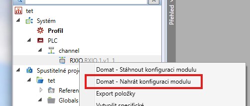 Novější veze Domat IDE používají příkaz Nahrát konfiguraci modulu