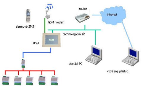 Řízené okruhy: vytápění, řízení světel vnitřních i venkovních, vazba na EZS, sběr alarmových stavů od dalších technologií.