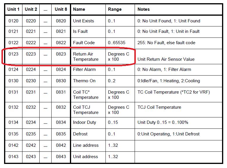 V tomto případě jsme již na správné cestě, potíž je nejspíše ve škálování. Výsledek je nutné vydělit, obvykle 10 nebo 100: Modbus neumí přenášet desetinná čísla a hodnoty, u nichž je to žádoucí, se v zařízení před přenosem do tabulky nejprve vynásobí a po načtení klientem je třeba je vydělit. Dodavatel by na to měl upozornit v Modbusové tabulce, jako je tomu na Obr. 1, kde teplota je udávána v °C × 100. Je tedy ji nutné po vyčtení vydělit 100.