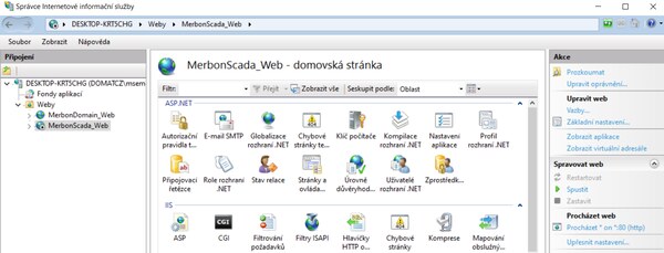 K řešení stačí otevřít aplikaci “Správce internetové informační služby (IIS)”. Zde rozbalíme strom v levé části a najdeme stránku “MerbonScada_Web”. Web bude zastavený a nepůjdu spustit. Při pokusu o spuštění se zobrazí chyba: “Tento web nelze spustit. Port je pravděpodobně používám jiným webem.”