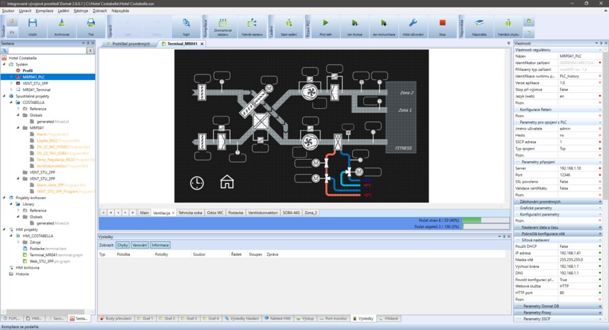 Pro webový přístup je nejprve nutné pomocí grafického editoru v Domat IDE vytvořit webové stránky, které se pak nahrají do PLC. V editoru se vytvářejí grafické panely s texty, obrázky, ovládacími tlačítky, hodnotami a dalšími objekty. Jako podklad lze použít schéma technologie, půdorys nebo jakýkoli jiný obrázek. Rozlišení je volitelné, takže jako výchozí formát obrazovky vybereme některou z předdefinovaných velikostí, nebo zadáme vlastní. Díky tomu, že veškerá data jsou ukládána ve vektorovém formátu, grafika má stejný vzhled i u webových klientů s různým rozlišením obrazovky. Používaný standard HTML 5 je podporován všemi aktuálními verzemi prohlížečů. Systém nevyužívá technologii Java, a proto je vhodný i do prostředí s vysokými nároky na bezpečnost. U výkonnějších platforem web obsahuje generický přehled alarmů, log a grafy s historickými daty.