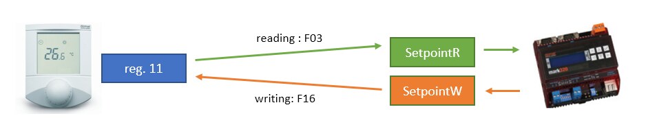 The SetpointRW variable is then used both to display and to set in a LCD menu, web pages etc., in the same manner as if it was a common global variable containing a setpoint.