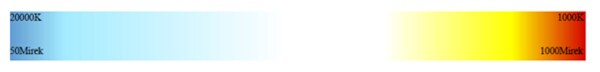Relationship between color temperature and Mirek units. Source: ČSN EN 62386-209