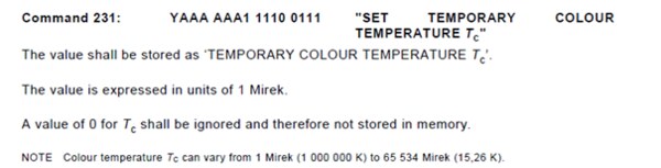 And it is in Mirek units that the desired color in the DALI standard is specified.