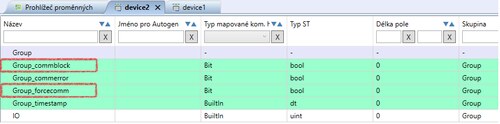 The commblock variable has a default value of False and if it is set to True, the group stops to communicate. In Port monitor there is a message "Reading (or Writing) group with index ... skipped" again, in the example below for two groups: