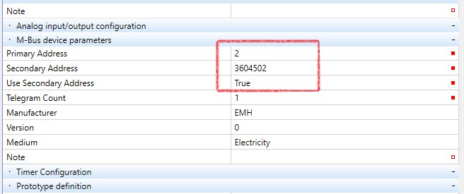 Note that when a meter is generated, the Use secondary address option is selected by default. If primary addresses shall be used for communication, this property must be changed here (which may be also done for more variables together).