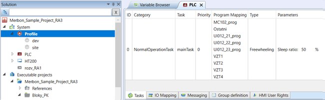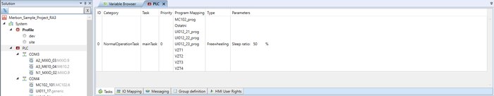 At PLCs with FreeRTOS operating system, i.e. mark100, mark120, mark125, mark130, mark150, mark150/485, IMIO100, IMIO105, IMIO110, ICIO200 and ICIO205, the PLC can only run a single task which executes all mapped programs. From IDE version 2.5.x.x, only one task is enabled for all PLCs without distinction.