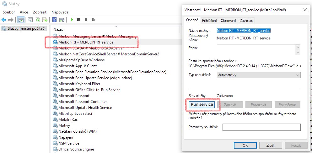 where "Merbon RT - MERBON_RT_service" is the full name as we see it in the list of services. Uninstalling the service does not release the license. If the license is to be transferred to another computer, eg in the event of a failure or upgrade of the machine, contact support@domat.cz and state the license number. Activation will be added to the license, so the license number can be reused on new hardware.