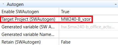 - all necessary variables are already pre-mapped in this created device library - select Target project (SWAutogen) in the data point properties,