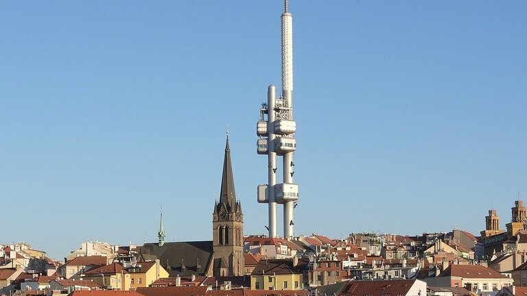 The tubes carry three cabins: at a height of 66 m there is a restaurant, at a height of 93 m there is an observation cabin (from which it is possible to see up to 100 km away, in good visibility) and a little higher is a broadcasting cabin. Above, there are platforms with lattice masts and constructures for attaching antennas, because the tower is also an important telecommunication node: besides digital broadcasting of 11 television and 8 radio stations (analogue television broadcasting was finally finished three years ago) there are mobile transmitters, VHF radio transmitters and other wireless links.
