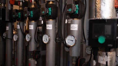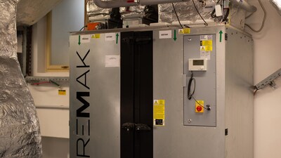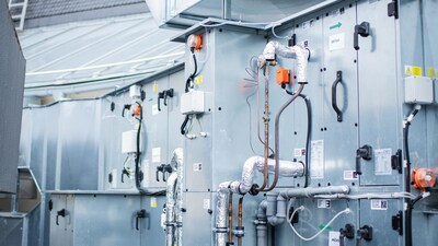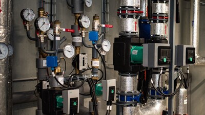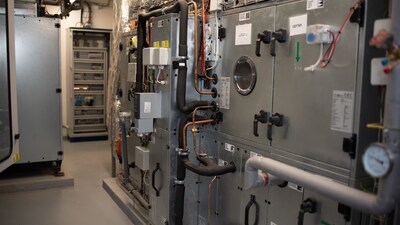 The Domat control system mainly controls and regulates individual air-conditioning units, of which there are a total of 13. Peripherals include fans, hot water heating, heat pumps (heating/cooling), rotary recuperators, humidifiers, dampers, measurement of temperature, humidity, air quality, pressure differences, etc. Air handling units with local heat pumps enable individual cooling without the need to distribute cold water throughout the building.
