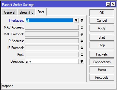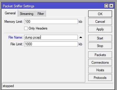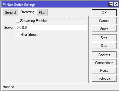The Streaming tab allows you to set a specific address and port. The Sniffer then only stores data that matches the given parameters. This means saving memory space and increasing the clarity of the recordings. For short logs of tens of seconds (if we get an error within this time, such as when establishing a connection) it is not necessary to care about this, the logs can be filtered later in Wireshark.